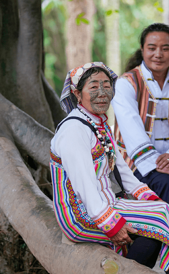 德昂族人口約1.7萬,主要分布在德宏州和保山市的潞西、梁河、瑞麗、隴川、隆陽等縣區。民居多為草排覆頂竹木結構的干欄式建筑,眼前的德昂村建筑納入了能容納數十人居住的德昂大房子,氈帽頂的小房子,還有頗具浪漫色彩的大公房、小公房……還建有“龍陽塔”標志及佛教奘房、佛塔。德昂族民間普遍信奉南傳佛教,民俗活動與佛事活動關聯緊密。潑水節(jié)、開門節(jié)、關門節(jié)是重大節(jié)日。德昂族服飾色彩豐富,口頭文學特別是民歌創(chuàng)作活動...